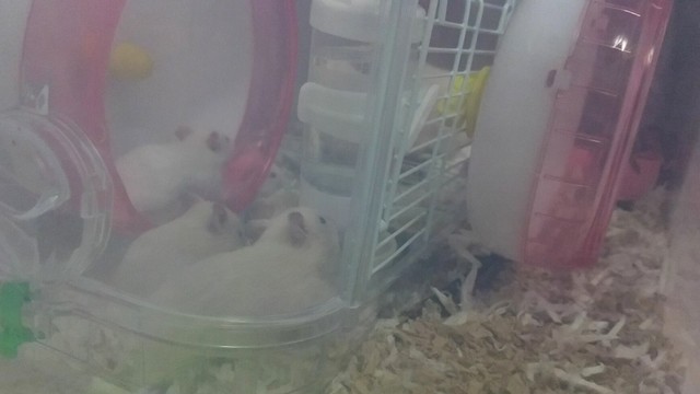 久しぶりの回し車に沙織ちゃんが譲らないので親子で奪い合い