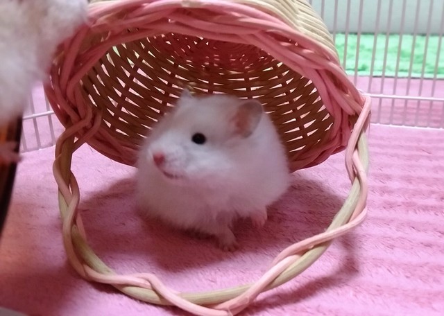 今夜は残ったベビーたちだけでお散歩。カゴを入れてみると