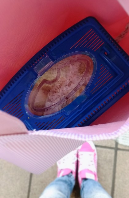 虫かごにinされるカップケーキちゃん。